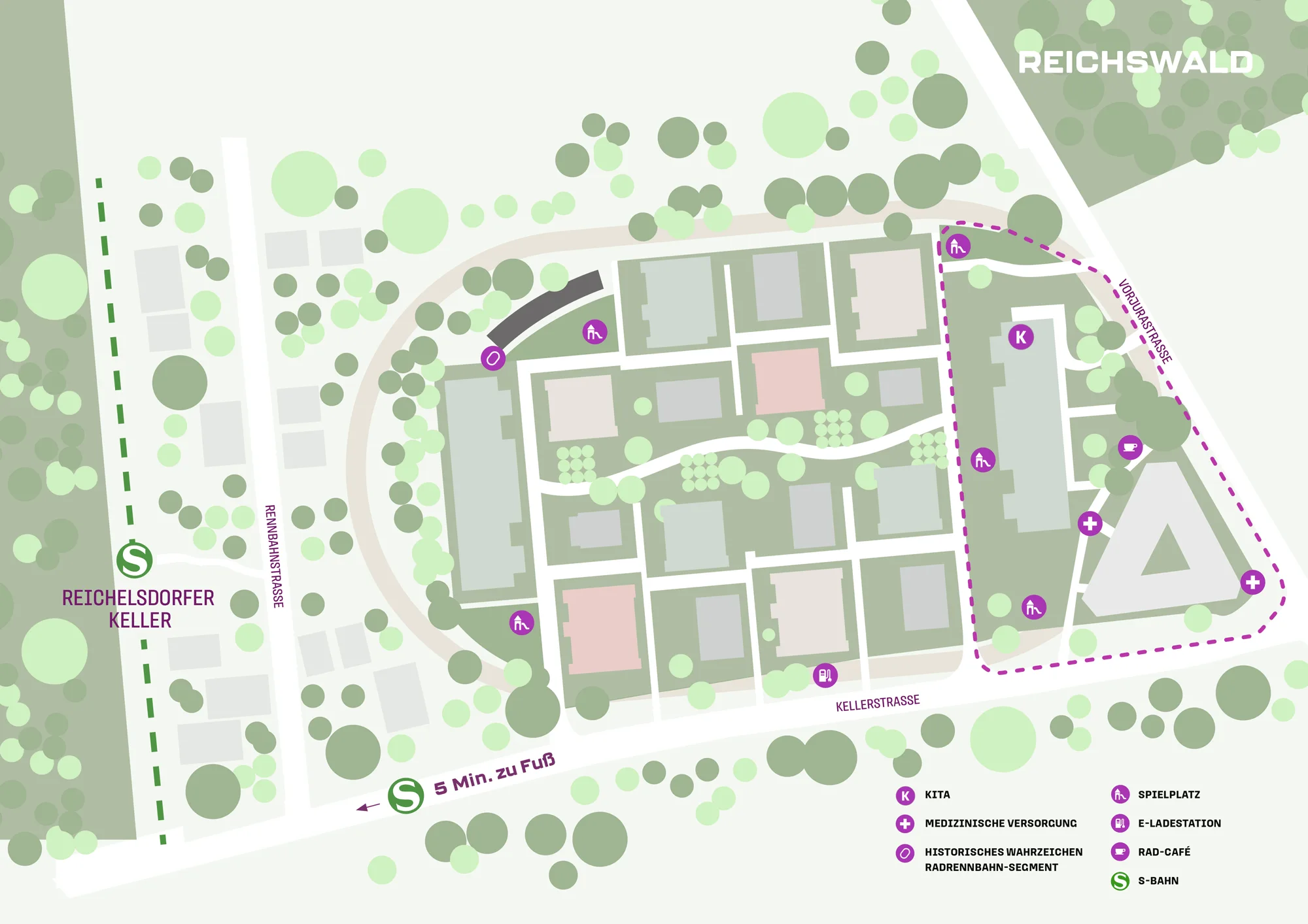 Mit der Realisation von loop.one auf dem Grundstück an der Vorjurastraße 176-180 starten jetzt die Baumaßnahmen auf dem Gelände der ehemaligen Radrennbahn Reichelsdorf. Mit dem ersten Bauabschnitt wird das neue Entrée des LOOP Wohnquartiers in Holzhybrid-Bauweise mit hochwertigstem Energieeffizienzstandard KfW 40 NH geschaffen. Hier entsteht nun eine neue KiTa für fünf Gruppen mit 99 Kindern auf ca. 700 m² Nutzfläche mit einem schön gestalteten Außenbereich.